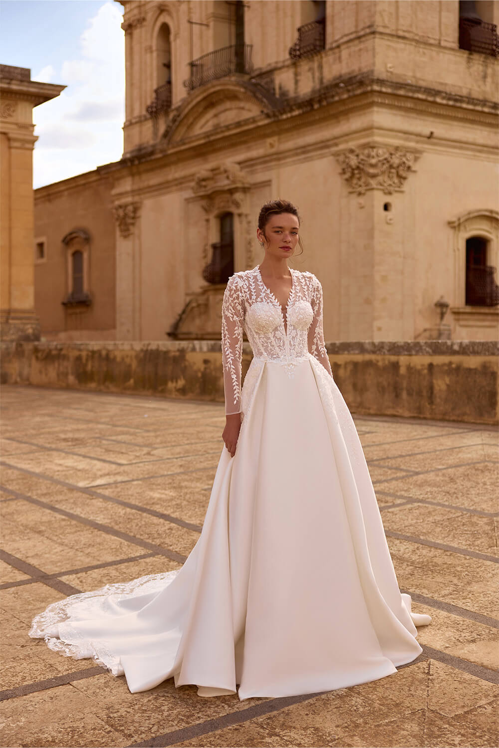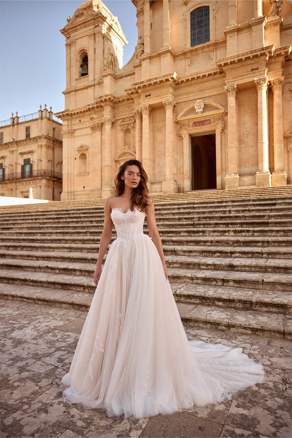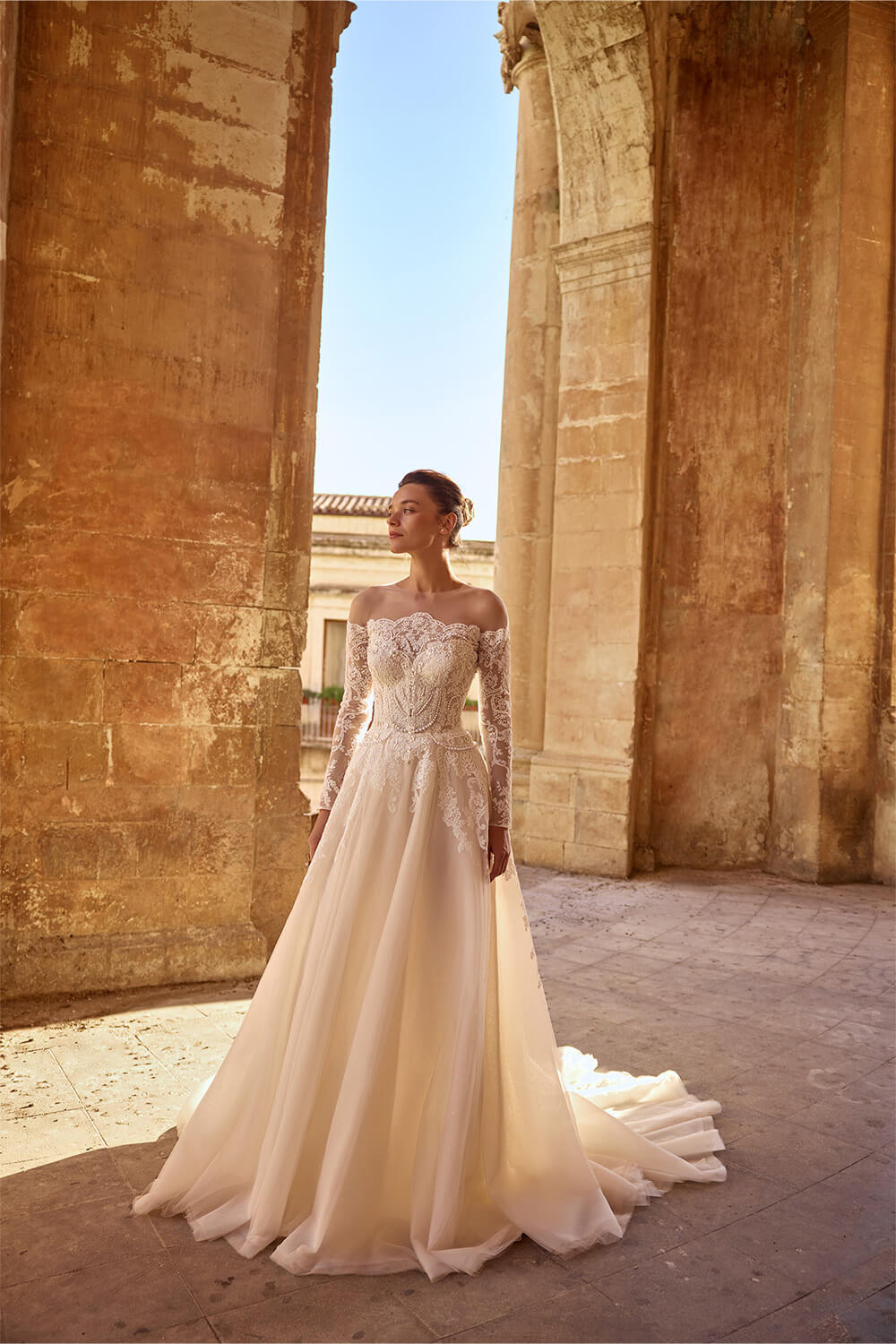 Light silhouettes, semi-sheer textures, and a soft play of light make each dress feel almost weightless. Thought-out accents - delicate lace, clean lines, barely noticeable details - create a feeling of lightness, like a breeze caught for a moment.